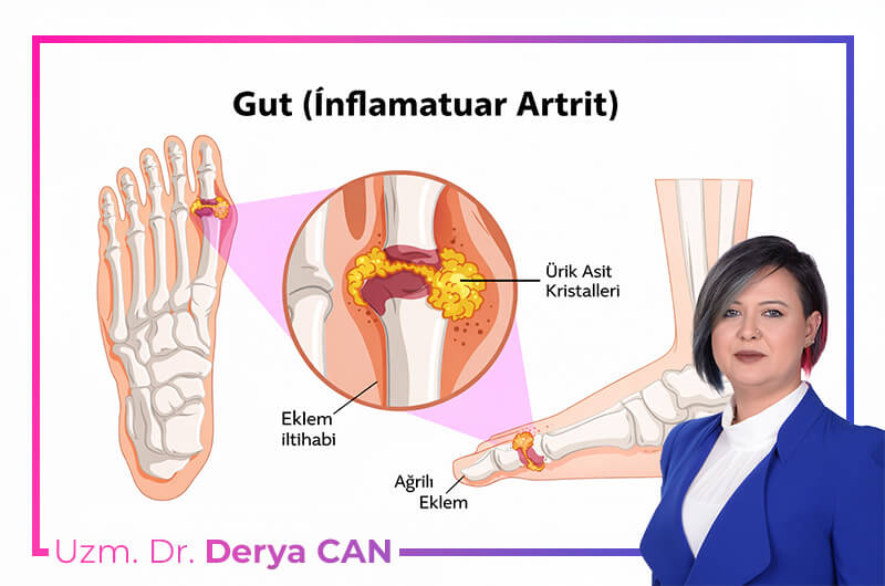 İltihaplı bir romatizma türü olan rahatsızlık, eklemleri etkiler ve hareket kısıtlılığına neden olur. İnsanların yaşam kalitesini düşürür. Doğru yöntemlerle tedavi edilmediğinde etkisi çok daha fazla olur. Uzm. Dr. Derya Can, prolozon ve IV detoks tedavisi gibi yöntemlerle bu hastalığın neden olduğu semptomları başarılı şekilde ortadan kaldırır. Tedavi yöntemleri ve gut hastalığı nedir sorusunun ayrıntılı yanıtı için dilediğiniz zaman bizimle iletişime geçebilirsiniz.